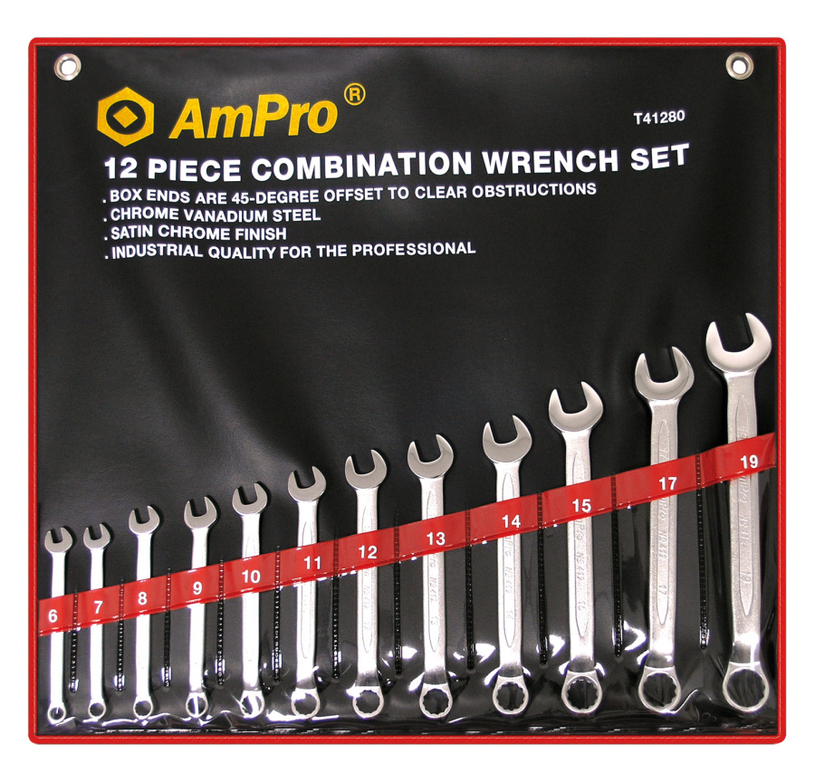 Приобрести T41280 Набор ключей комбинированных c изогнутой головкой,12 предметов (6-19 мм) от компании AmPro (Тайвань) из раздела Наборы ключей по цене 3 215 рублей.