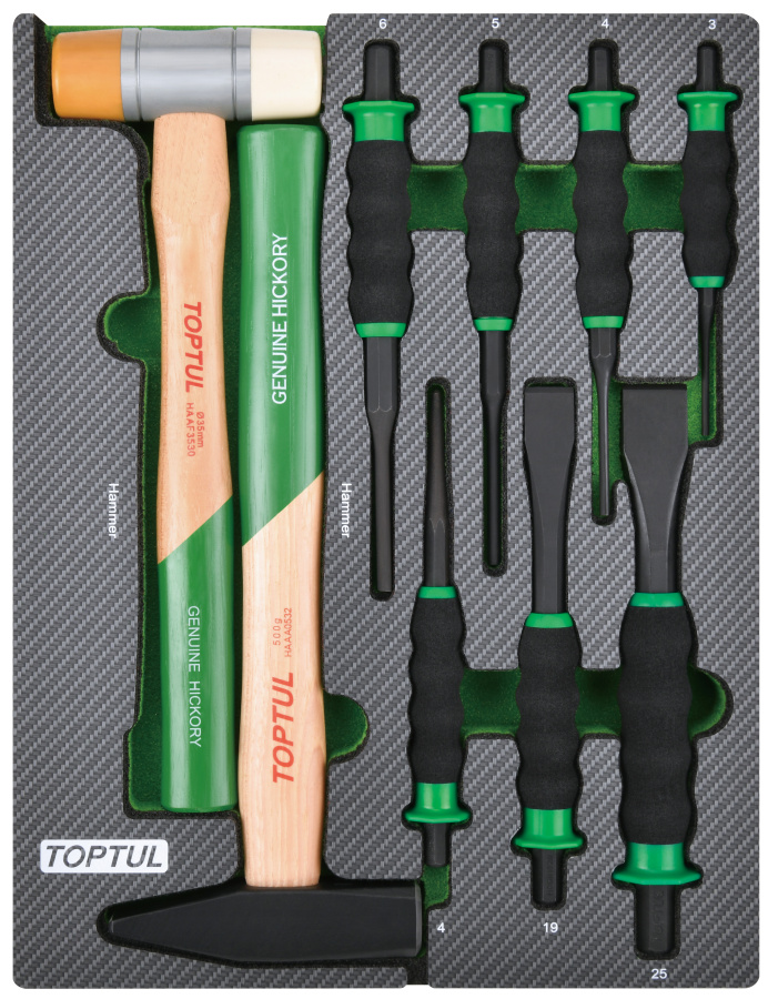 Набор инструментов, молоток, выколотки и зубила 9 пр. в мягком ложементе TOPTUL