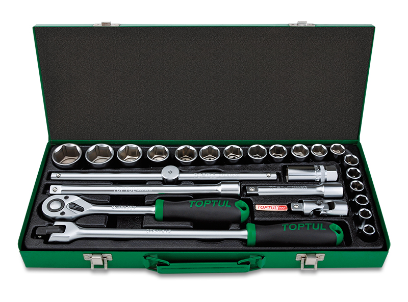 Набор головок и аксессуаров 1/2" 6-гранных 10-32мм, 25 предметов в метал.кейсе TOPTUL