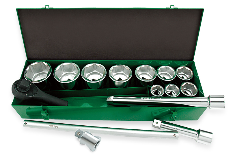 Набор головок и аксессуаров 1" 6-гранных 36-80 мм, 14 предметов в метал.кейсе TOPTUL